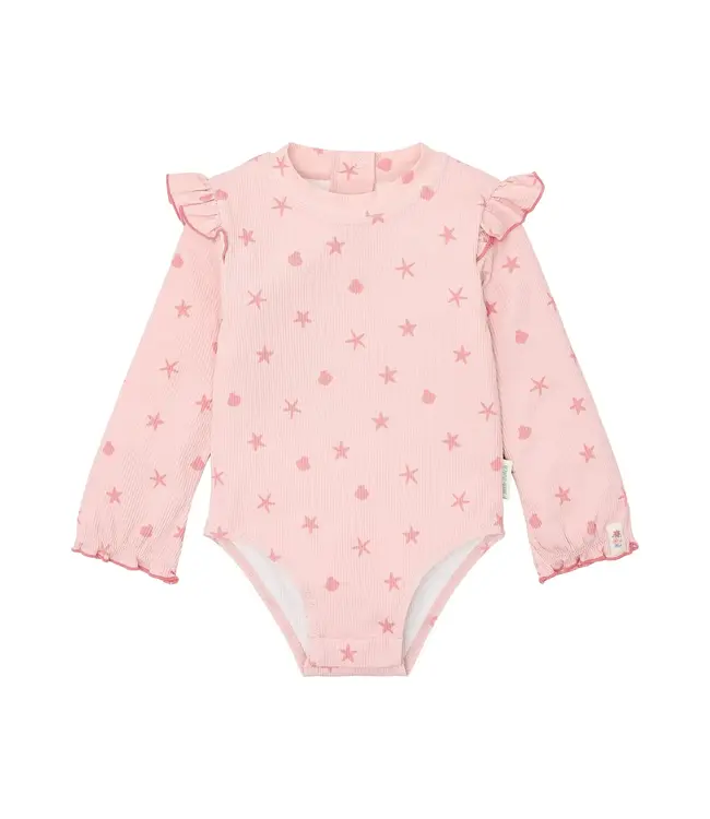 Bescherm je kindje stijlvol tegen de zon met dit badpak met lange mouwen UPF 40 in Dreamy Seashells van Little Dutch. Dit UV-badpak voor baby en kind combineert een zachte schelpenprint met optimale bescherming tijdens zonnige dagen aan het strand, zwembad of op vakantie.
