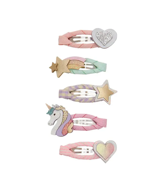 Geef het haar een vrolijke touch met onze dromerige mini-haarclips met eenhoorns. Deze kleine clips in een schattig en kleurrijk pastelpalet zijn perfect om een vleugje magie aan elk kapsel toe te voegen!